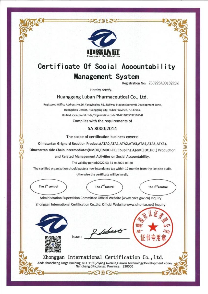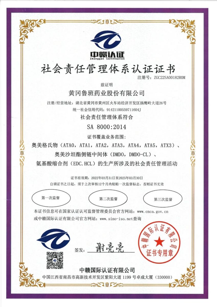 黃岡魯班藥業(yè)股份有限公司成功通過(guò)SA8000:2014社會(huì)責(zé)任管理體系認(rèn)證